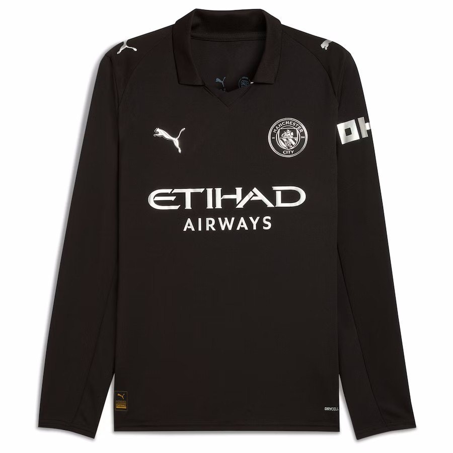 חולצת החוץ החדשה של מנצ'סטר סיטי לשנת 25-26 מציגה עיצוב פשוט ומתוחכם, עם צבע שחור כצבע הראשי. חולצה איכותית זו של סיטי, כוללת סמלים בצבע כסף מתכתי (Metallic Silver), המוסיפים נגיעה של יוקרה. את המראה המסוגנן משלים צווארון פולו קלאסי עם פס כסוף עדין. התלבושת כולה – חולצה, מכנסיים וגרביים – מגיעה בצבע שחור, ליצירת מראה אחיד, אלגנטי ועוצמתי, שהוא הרבה יותר מאופק וקלאסי מהחולצה השחורה האחרונה של המועדון מעונת 23-24.