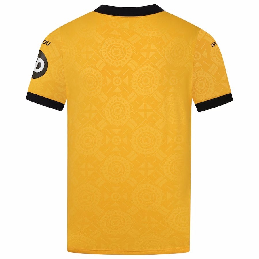 חולצת הבית החדשה של וולבס לעונת 25-26 שומרת על צבע הזהב הישן (Old Gold) האייקוני כצבעה הראשי. הייחודיות שלה מגיעה מהצווארון והשרוולים, הכוללים עיטור פסים בולט בשחור-לבן, המחזיר את האוהדים לעיצובים הקלאסיים של סוף שנות ה-90. בחזית החולצה מתנוסס הלוגו של הספונסר הראשי "AstroPay", יחד עם סמל המועדון.
