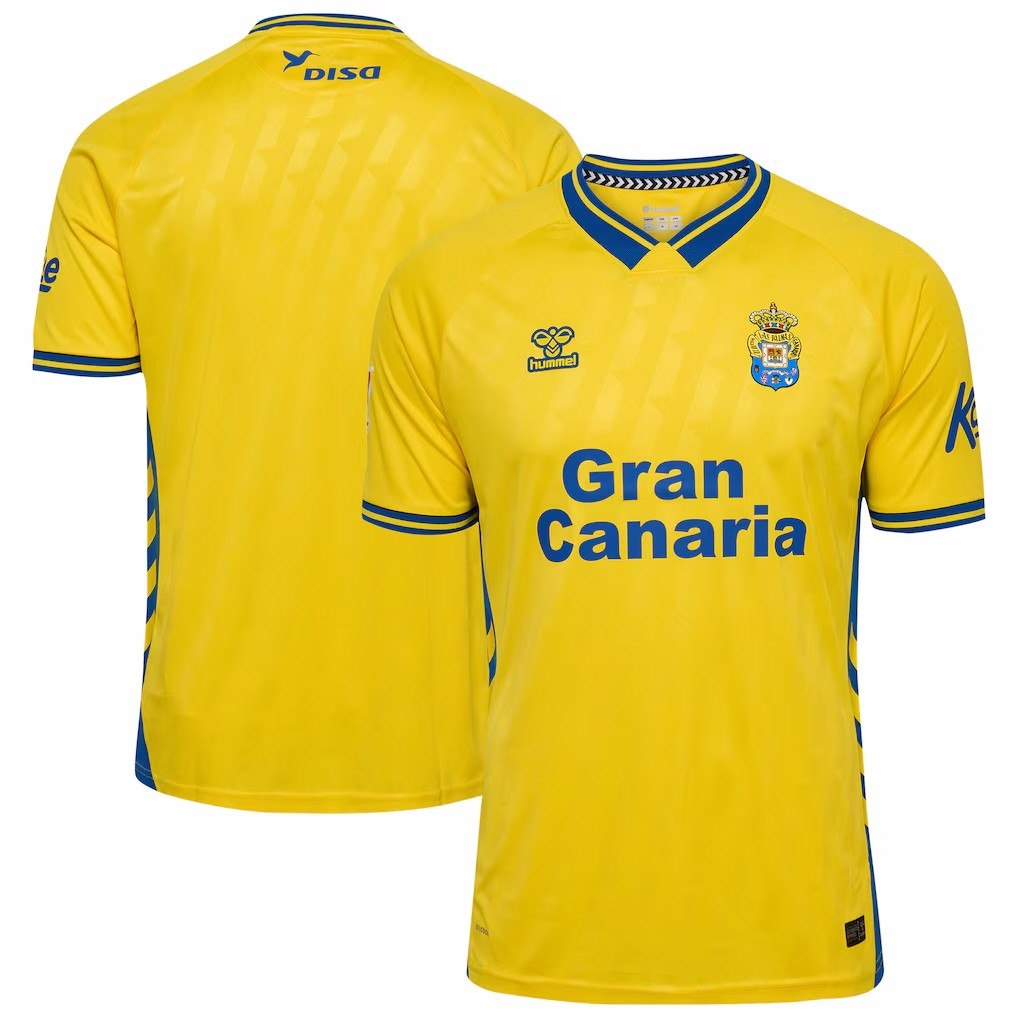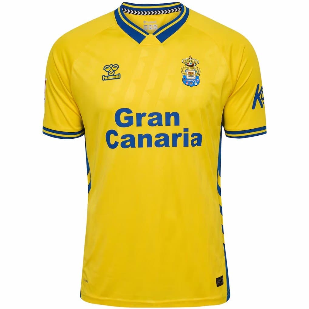 לאס פלמאס מציגה את חולצת הבית לעונת 2025-26 בעיצוב צהוב־כחול נקי עם גרסת מסגרת של לוגו Hummel, שמחזק את זהות המועדון ומציע התאמה מושלמת למגרש וליום-יום.