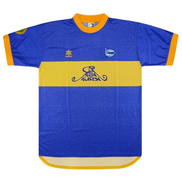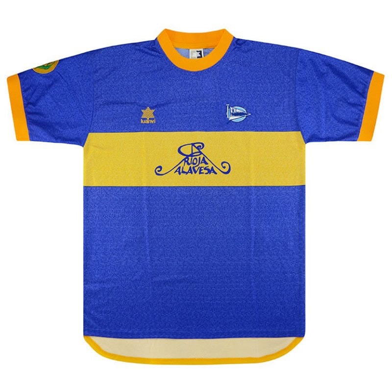 דפורטיבו אלאבס חתמה את עונת 2000/01 עם אחד הרגעים הגדולים בתולדות המועדון: הגעה לגמר גביע אופ״א. החולצה המיוחדת של הגמר מציגה בסיס כחול עם פס חזה צהוב בעיצוב חד ונקי, ומייצגת ערב אירופי בלתי נשכח שנכנס לפנתיאון של המשחקים הדרמטיים ביותר שנראו בגמר אירופי.