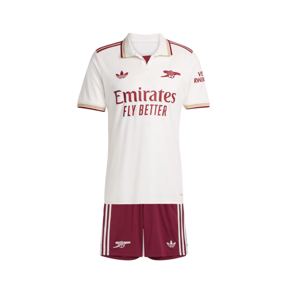ההשראה לחולצה השלישית היא כולה הוקרה לאצטדיון הייבורי, ולציון 20 שנה לעונת 2005-06, העונה האחרונה של המועדון במגרשו המיתולוגי. פלטת הצבעים של לבן, בורדו וזהב היא מחווה לחולצת החוץ האהובה של עונות 2007-09. בנוסף, הדפוס המוטבע על הבד שואב השראה ישירה מסגנון האר דקו שאפיין את היציעים המפורסמים של הייבורי, ובכך יוצר חיבור ויזואלי ורגשי עמוק לאחד המקומות החשובים בהיסטוריה של המועדון.