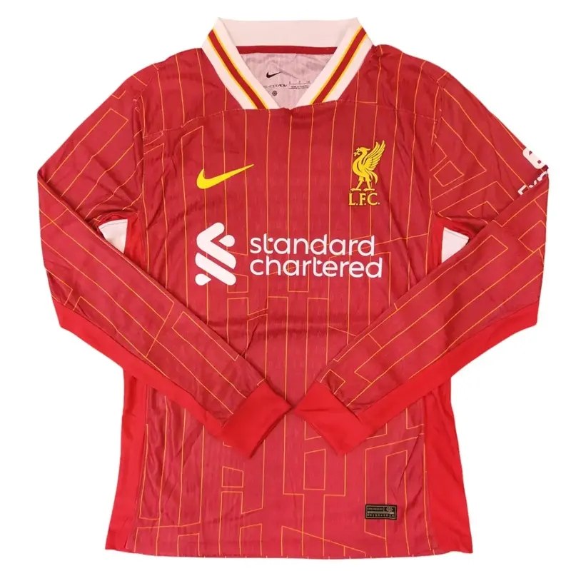 חולצת הבית של ארסנל לעונת 2024-2025, שעוצבה על ידי אדידס, משלבת את הצבע האדום הקלאסי של המועדון עם אלמנטים לבנים ופסים כחולים בצדדים, כחלק מתבנית העיצוב החדשה של אדידס. החולצה כוללת את סמל התותח האייקוני של המועדון, המופיע לראשונה מאז עונת 1989-1990. חולצות כדורגל ארוכות יכולות להיות פריט לבוש אופנתי, וארסנל עשו זאת מעולה כאשר האריכו את הפסים בצדי החולצה, דבר שנותן מראה רטרו אך עדיין חדשני לחולצה.