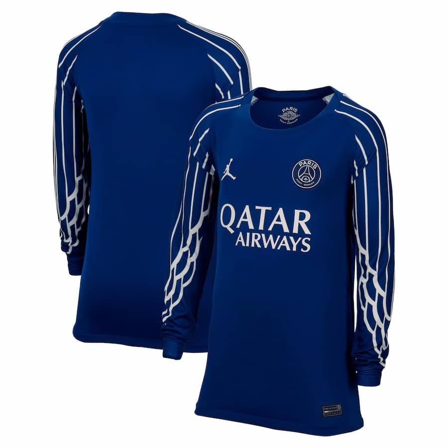 חולצת הרביעית של פריז סן-ז'רמן לעונת 2024-2025, בעיצוב יוקרתי של Jordan Brand, מציגה מראה כחול כהה (Blue Void) אלגנטי במיוחד.