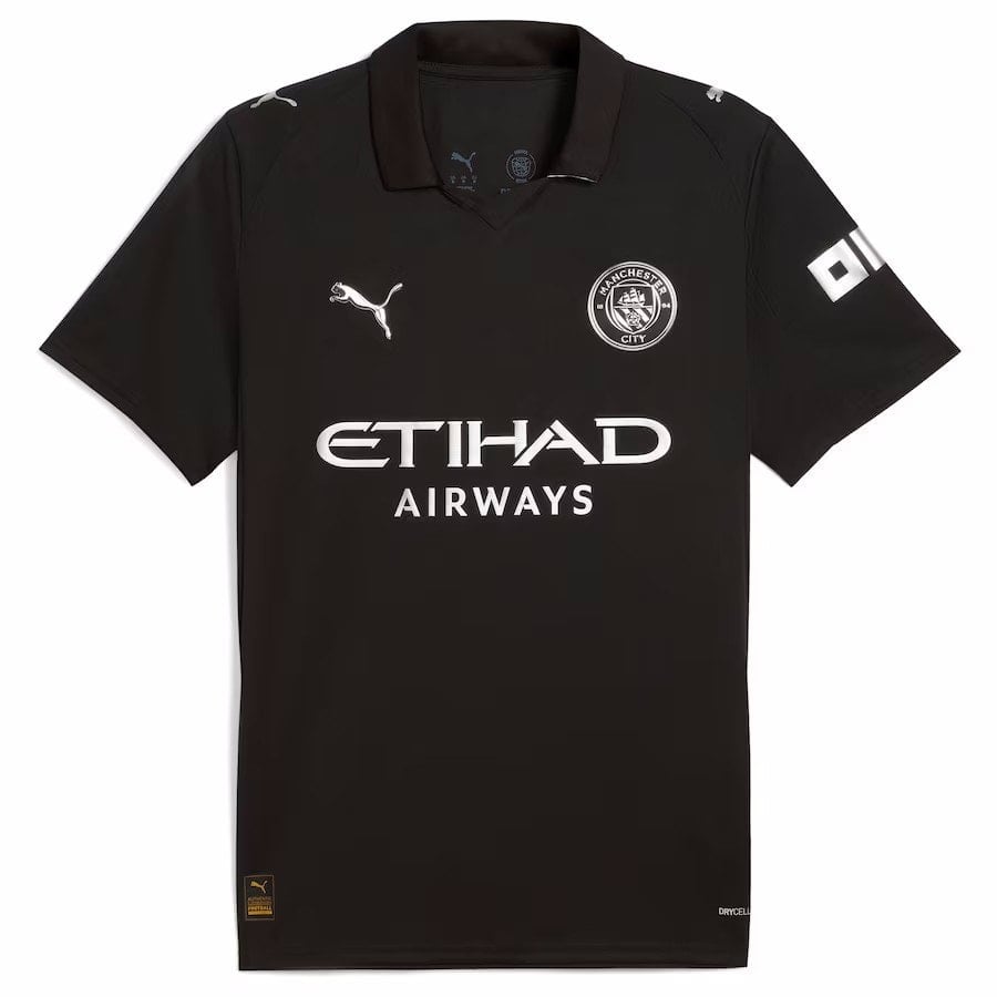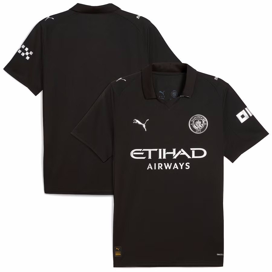 חולצת החוץ החדשה של מנצ'סטר סיטי לשנת 25-26 מציגה עיצוב פשוט ומתוחכם, עם צבע שחור כצבע הראשי. חולצה איכותית זו של סיטי, כוללת סמלים בצבע כסף מתכתי (Metallic Silver), המוסיפים נגיעה של יוקרה. את המראה המסוגנן משלים צווארון פולו קלאסי עם פס כסוף עדין. התלבושת כולה – חולצה, מכנסיים וגרביים – מגיעה בצבע שחור, ליצירת מראה אחיד, אלגנטי ועוצמתי, שהוא הרבה יותר מאופק וקלאסי מהחולצה השחורה האחרונה של המועדון מעונת 23-24.