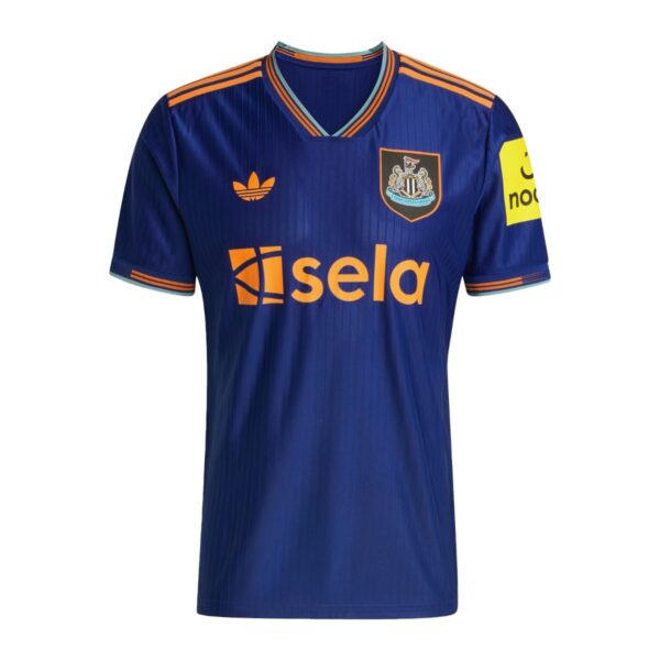 חולצת החוץ לעונת 25-26 היא מחווה מרגשת לחולצת החוץ האייקונית של ניוקאסל יונייטד מעונת ליגת האלופות 1997-98. בעוד שהחולצה המקורית הייתה ידועה בפס הירוק-ענבר הבולט שלה ובסמל "Newcastle Brown Ale" הגדול, הגרסה החדשה מאמצת גישה מינימליסטית יותר. היא מחדשת את פלטת הצבעים ואת האווירה הכללית של המקור, ומעניקה למורשת מראה עכשווי ומותאם, המבטא חיבור עמוק להיסטוריה של המועדון תוך כדי הסתכלות קדימה.