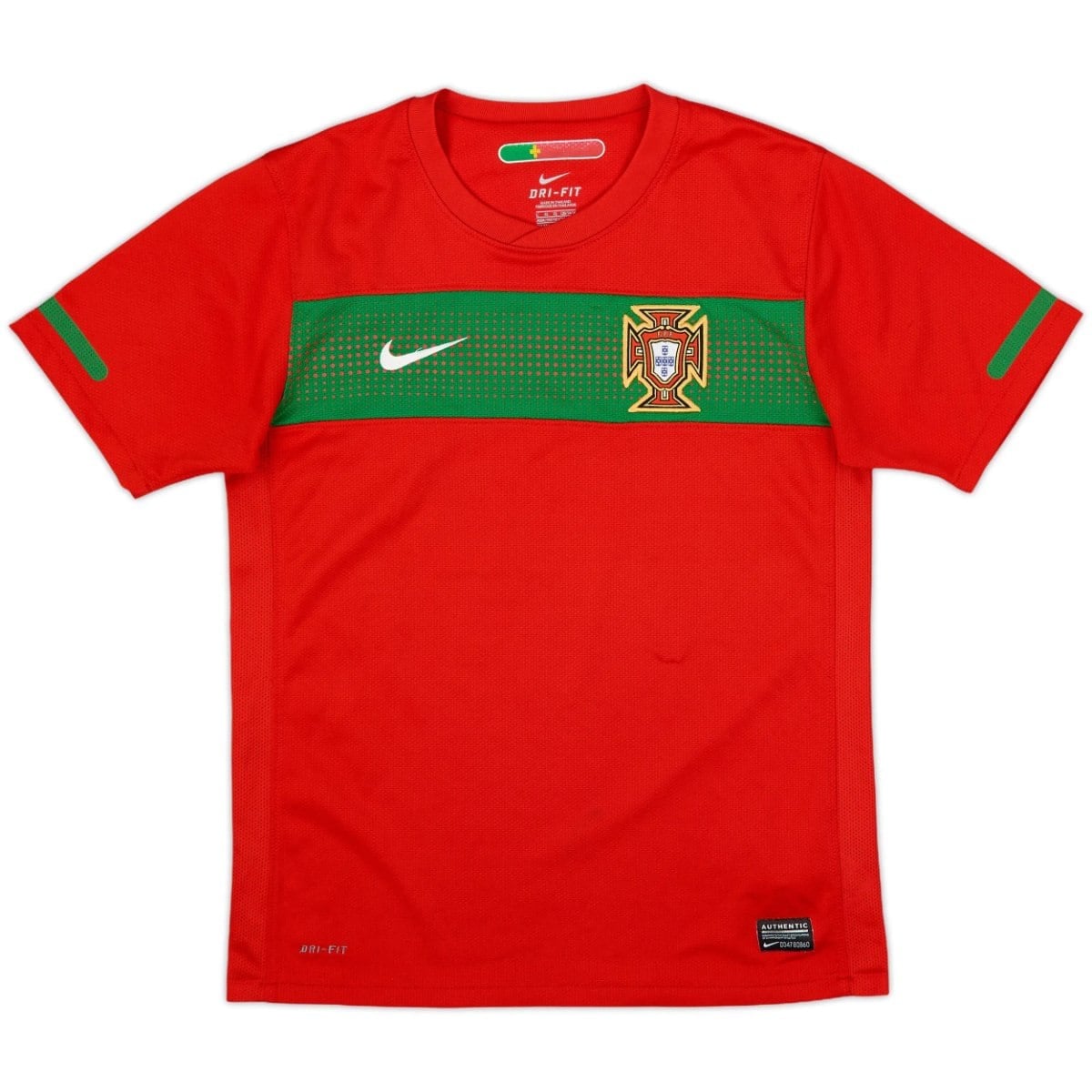 חולצת הבית של פורטוגל מ-2010 משלבת אדום ברור עם אלמנט ירוק שמדגיש את הזהות הלאומית. זו חולצה מתקופה שבה העיצוב כבר היה נקי ומודרני יותר, אבל עדיין מרגיש רטרו למי שאוסף חולצות מונדיאל.