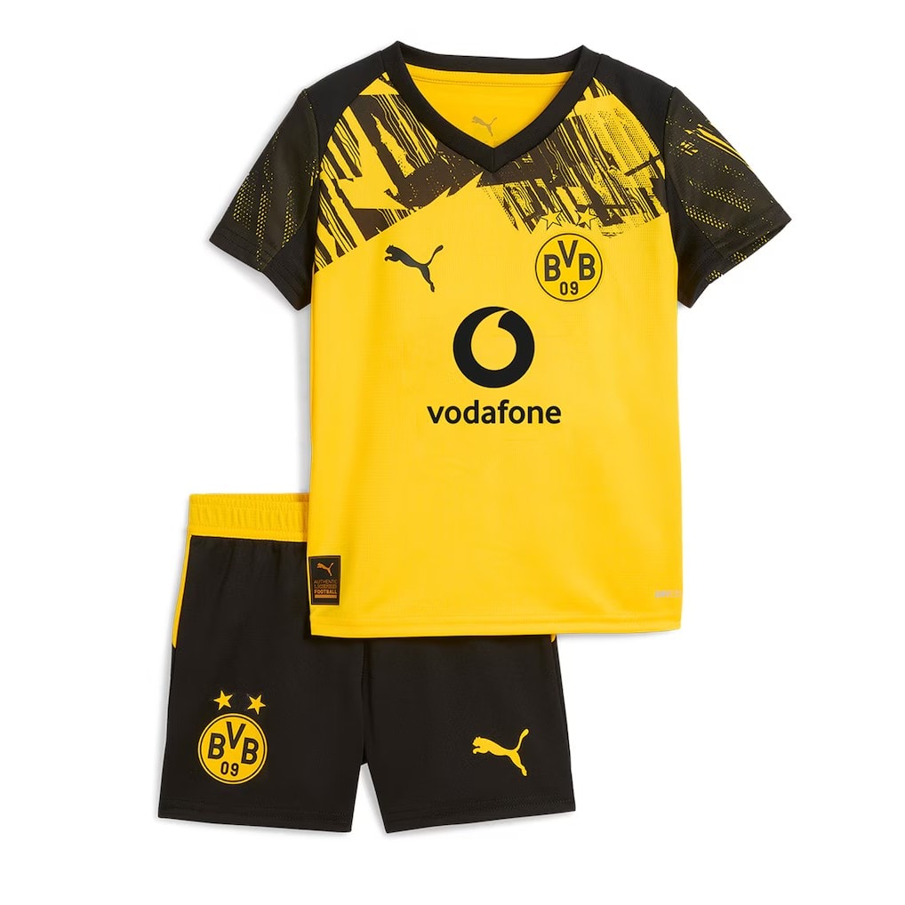 חליפת הילדים הביתית של דורטמונד מביאה את הווייב של הניינטיז לגרסה יומיומית לילדים: צהוב קלאסי עם דוגמה כהה באזור הכתפיים והשרוולים, בד נושם ונעים, ומראה “כמו של הגדולים”.