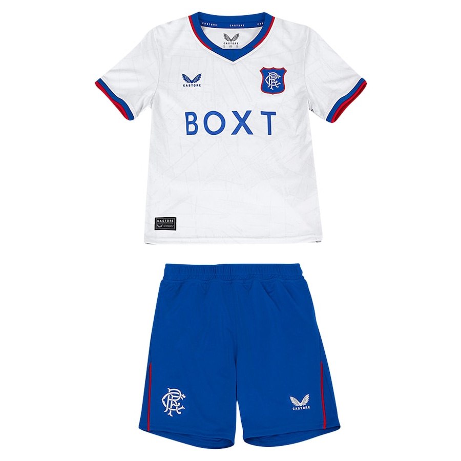 חולצת החוץ החדשה של מועדון הכדורגל ריינג'רס לעונת 2024/25, בעיצוב חברת קסטור (Castore), מציגה עיצוב ייחודי בהשראת האדריכלות של אצטדיון אייברוקס, החוגג השנה 125 שנים להיווסדו.