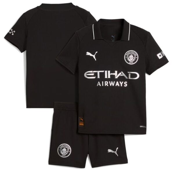 חולצת החוץ החדשה של מנצ'סטר סיטי לשנת 25-26 מציגה עיצוב פשוט ומתוחכם, עם צבע שחור כצבע הראשי. חולצה איכותית זו של סיטי, כוללת סמלים בצבע כסף מתכתי (Metallic Silver), המוסיפים נגיעה של יוקרה. את המראה המסוגנן משלים צווארון פולו קלאסי עם פס כסוף עדין. התלבושת כולה – חולצה, מכנסיים וגרביים – מגיעה בצבע שחור, ליצירת מראה אחיד, אלגנטי ועוצמתי, שהוא הרבה יותר מאופק וקלאסי מהחולצה השחורה האחרונה של המועדון מעונת 23-24.