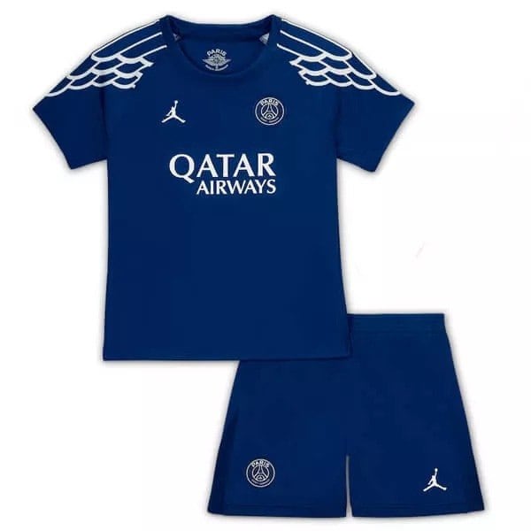 חולצת הרביעית של פריז סן-ז'רמן לעונת 2024-2025, בעיצוב יוקרתי של Jordan Brand, מציגה מראה כחול כהה (Blue Void) אלגנטי במיוחד.