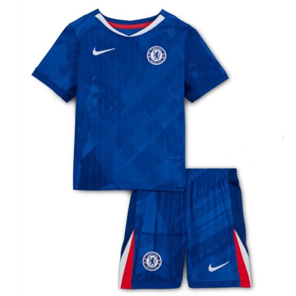 חולצת הבית של צ'לסי לעונת 2025/26, בעיצוב של Nike, מציגה את הצבע הכחול המסורתי של המועדון, בשילוב עם פרטים בלבן ואדום. העיצוב כולל גרפיקה בסגנון "גרנג'" המדגישה את האופי הקשוח והעירוני של לונדון ותושביה. הצווארון הלבן והפסים האדומים והלבנים בצדי החולצה מוסיפים ניגודיות מרעננת לעיצוב הקלאסי. החולצה נלבשה לראשונה ב-16 במאי 2025, במשחק ביתי בסטמפורד ברידג'.